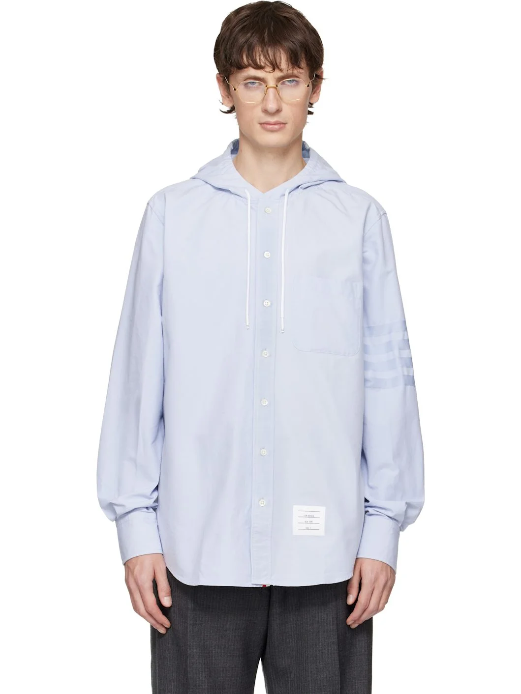 Cotton oxford cloth shirt. · Drawstring at hood · Button closure · Patch pocket at chest · Logo patch at front · Shirttail hem · Buttoned barrel cuffs · Triolocr grosgrain flag at back collar · Locker loop at yoke Supplier color: Light blue 100% cotton. Made in Italy 252381M192026