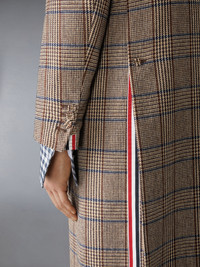 A fall staple crafted in our luxurious tweed fabric. This coat highlights Thom Browne’s renowned craftsmanship through self-covered armbands, self-covered buttons, and suede detailing. Its elongated silhouette offers full-body coverage, providing ultimate warmth from season to season. Hidden front button closure 3 Front flap pockets Buttoned armbands Double vented back Signature striped grosgrain loop tab Model is 6'1" (185cm), wearing size 1 100% Wool Combo 1: 100% Cotton Lining: 100% Cupro Made in Italy MOR148C-F1005-205