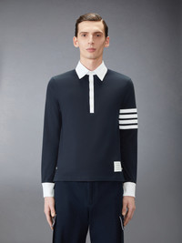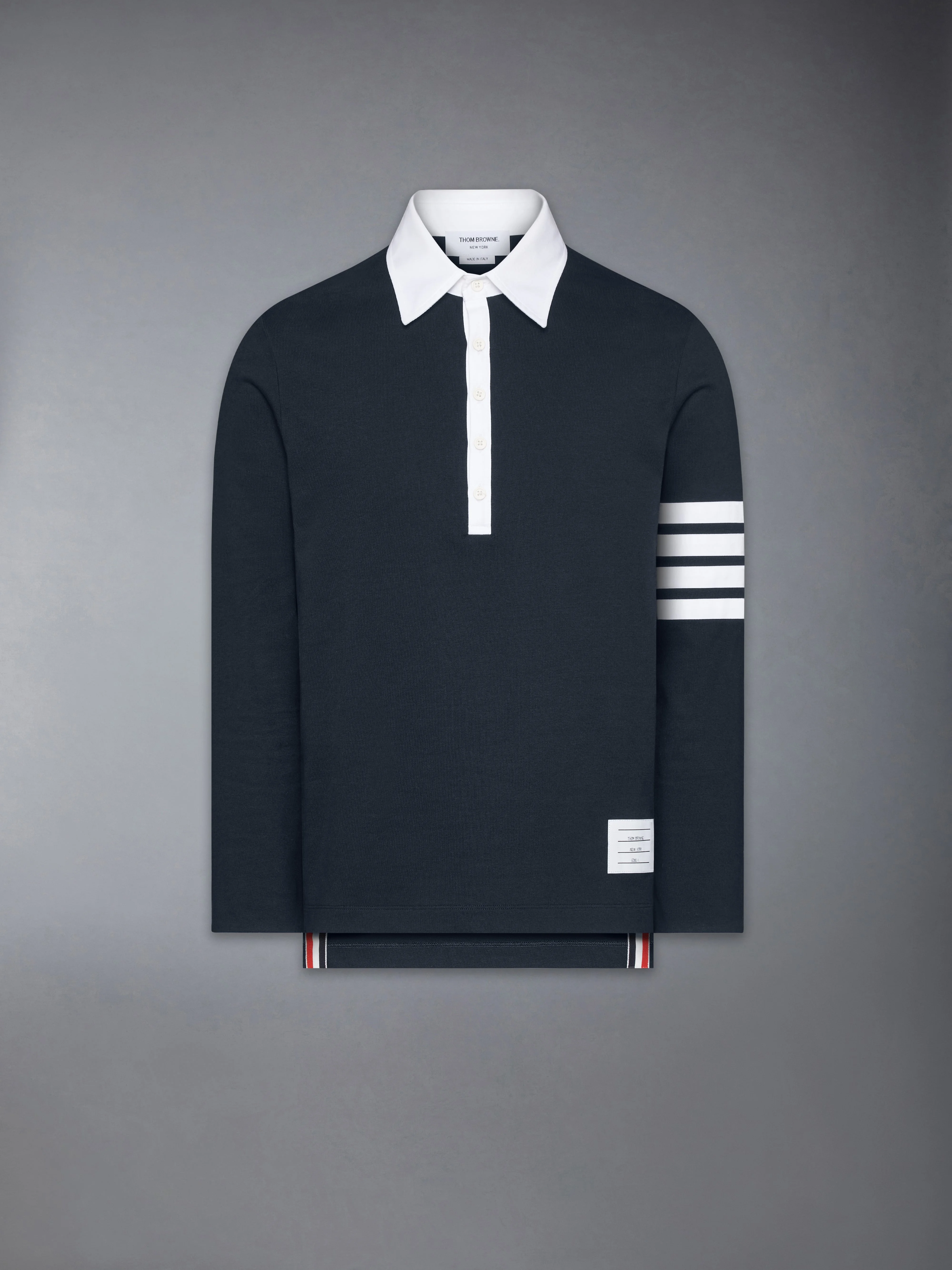 Inspired by midcentury rugby uniforms, this classic polo is crafted from breathable cotton for all-day comfort. Finished with our signature 4-bar detailing—an homage to athletic achievement and excellence—it’s a timeless piece that blends sport with sophistication. Pair it with our Washed Cotton Utility Cargo Trousers. Partial front button closure 4-bar detailing Name tag applique Model is 6'1" (185cm), wearing size 1 100% Cotton Combo 1: 97% Cotton, 3% Elastane Made in Italy MJP229A-J0058-415