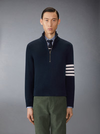 With bold 4-bar detailing at the left sleeve, this luxurious wool pullover pays homage to our sporty heritage. Designed with a partial zip for added breathability, it’s a versatile staple that effortlessly pairs with everything from tailored trousers to casual denim. Partial front zip closure 4-bar detailing Buttoned cuffs with signature striped grosgrain trim Signature striped grosgrain loop tab Model is 6'1" (185cm), wearing size 1 100% Virgin Wool Made in Italy MKA567A-Y1029-415
