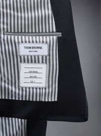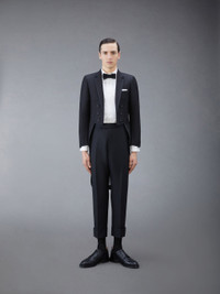 DETAILS & FIT Inspired by 18th-century elegant wear, our Wool Mohair Jacket With Tails renews an age-old silhouette with quality craftsmanship and meticulous tailoring. Button front closure Notched lapels Single chest pocket Pleated tail Buttoned cuffs with signature striped grosgrain trim Signature striped grosgrain loop tab at back of neck Model is 6' 1" (185cm), wearing size 0 100% Wool Lining: 100% Cupro Made in Italy MJC171B-00170-001