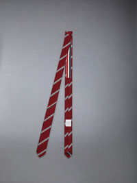 Inspired by classic preppy style, this luxe tie features a burgundy, grey, and white rep stripe. It’s the perfect finishing touch on any Thom Browne dress shirt or suit. Name tag applique Signature striped grosgrain loop tab 100% Silk Made in Italy MNL001A-F0954-615 MNL001A-F0954-615