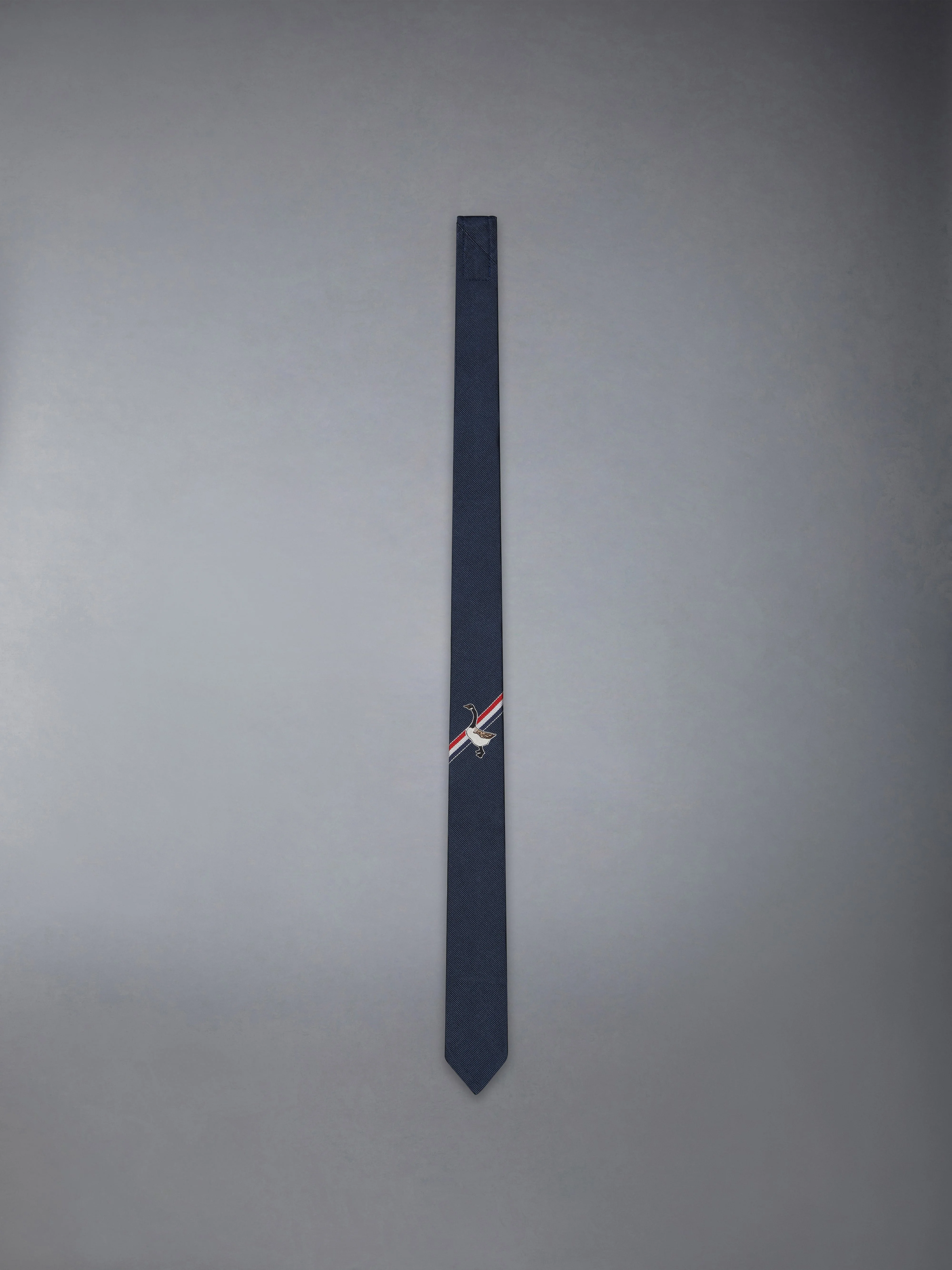 A stoic goose stands atop our signature tricolor stripe, symbolizing shifting seasons, new beginnings, and the limitless possibilities ahead. More than a tie, it’s a statement—an ode to embracing change and the journey ahead. Signature striped grosgrain trim Name tag applique 100% Silk Made in Italy MNL001A-F0974-415