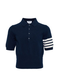 horse-intarsia polo shirt Highlights - Navy blue - Horse intarsia - Point collar - Short sleeves - Button fastening - Side slits Imported Composition Cotton 100% Washing instructions Dry Clean Only