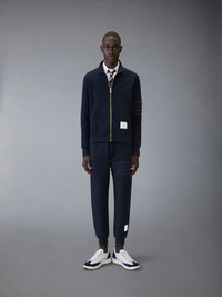 DETAILS & FIT Leisurewear made artful. Our Loopback 4-Bar Sweatpants are adorned with our iconic 4-Bar detailing emulated after varsity stripes. Drawstring waistband with silver tone aglets Name tag applique 4-bar detailing Slip side pockets Signature striped grosgrain loop tab Model is 6'1" (185cm), wearing size 1 100% Cotton Made in Italy MJQ224A-J0201-415