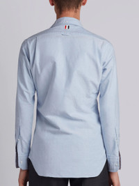 DETAILS & FIT Light Blue Classic Oxford Shirt Signature Grosgrain Placket Button-Down Point Collar Barrel Cuffs Long Sleeve Single Patch Pocket Thom Browne 4-Bar Tag Center-Back Locker Loop Model is 6' 1" (185cm), wearing size 1. 100% Cotton Made in the USA MWL010E06177480