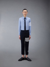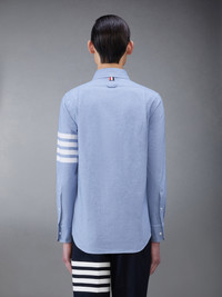 DETAILS & FIT A Thom Browne winter essential, our Flannel 4-Bar Shirt exhibits quality craftsmanship and meticulous tailoring. Pair with a casual pant during cooler months. Front button closure Button down point collar patch chest pocket 4-bar stripe detail at left sleeve Pleated Buttoned cuffs Name tag applique above hem Pleated back yoke with locker loop Signature striped grosgrain loop tab at back of neck Model is 6' 1" (185cm), wearing size 1 100% Cotton Made in Italy MWL272A-05245-480