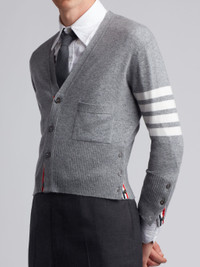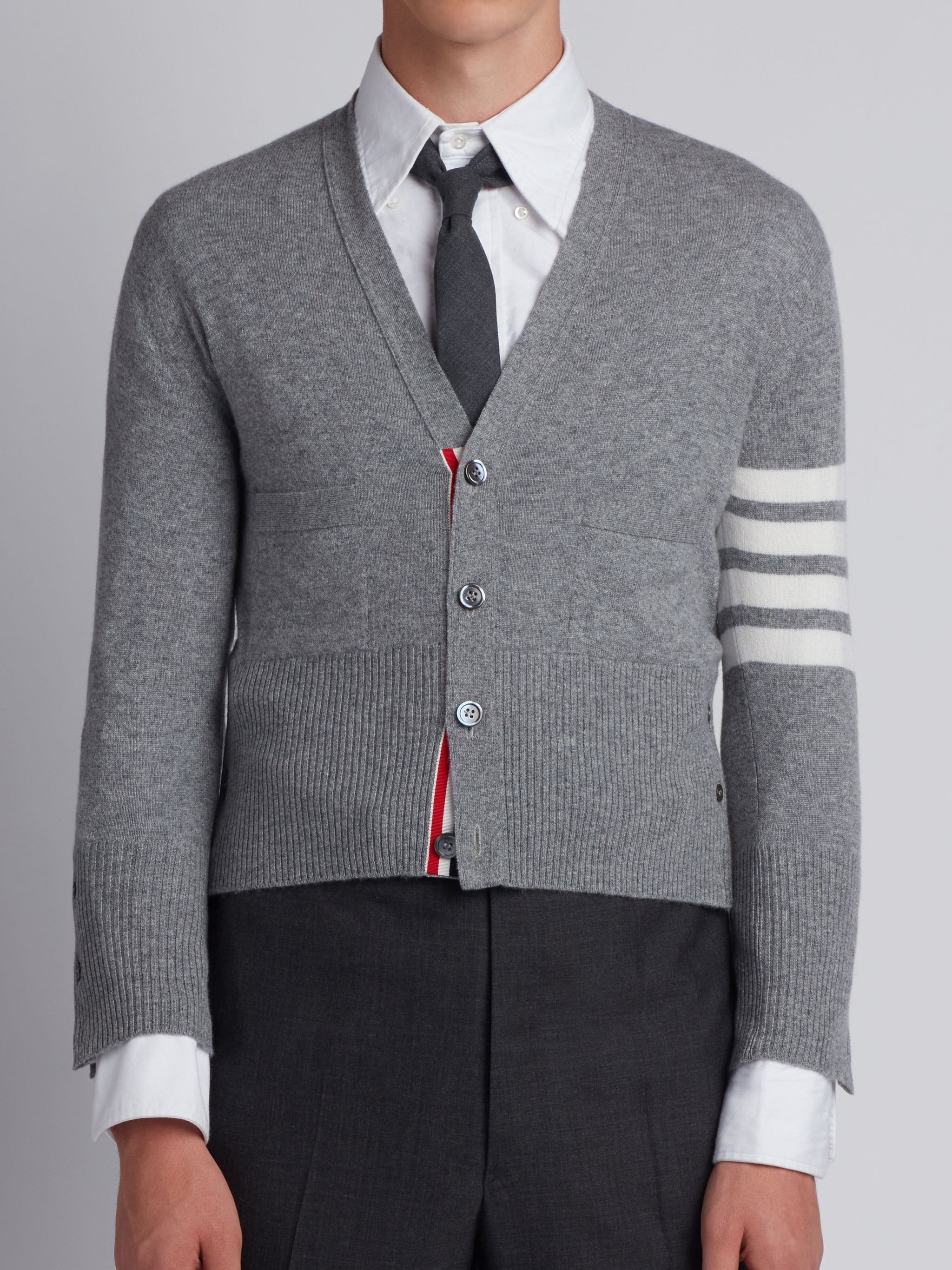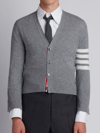 Light Grey Cashmere 4-bar Short V-neck Cardigan