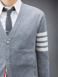 Light Grey Cashmere V-neck 4-Bar Cardigan