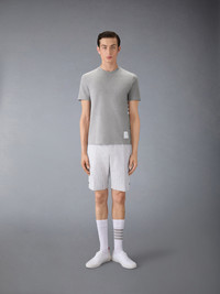 DETAILS & FIT A silhouette that has stood the test of time, our Classic Pique 4-Bar Tee is adorned with signature Thom Browne emblems throughout, and tailored to perfection. Crew neckline 4-bar stripe detail at left side Name tag applique above hem Signature striped grosgrain loop tab at back of neck Model is 6' 1" (185cm), wearing size 0 100% Cotton Made in Italy MJS123A-00050-055 - CHEST: 99.0cm - Shoulder Width: 43.0cm