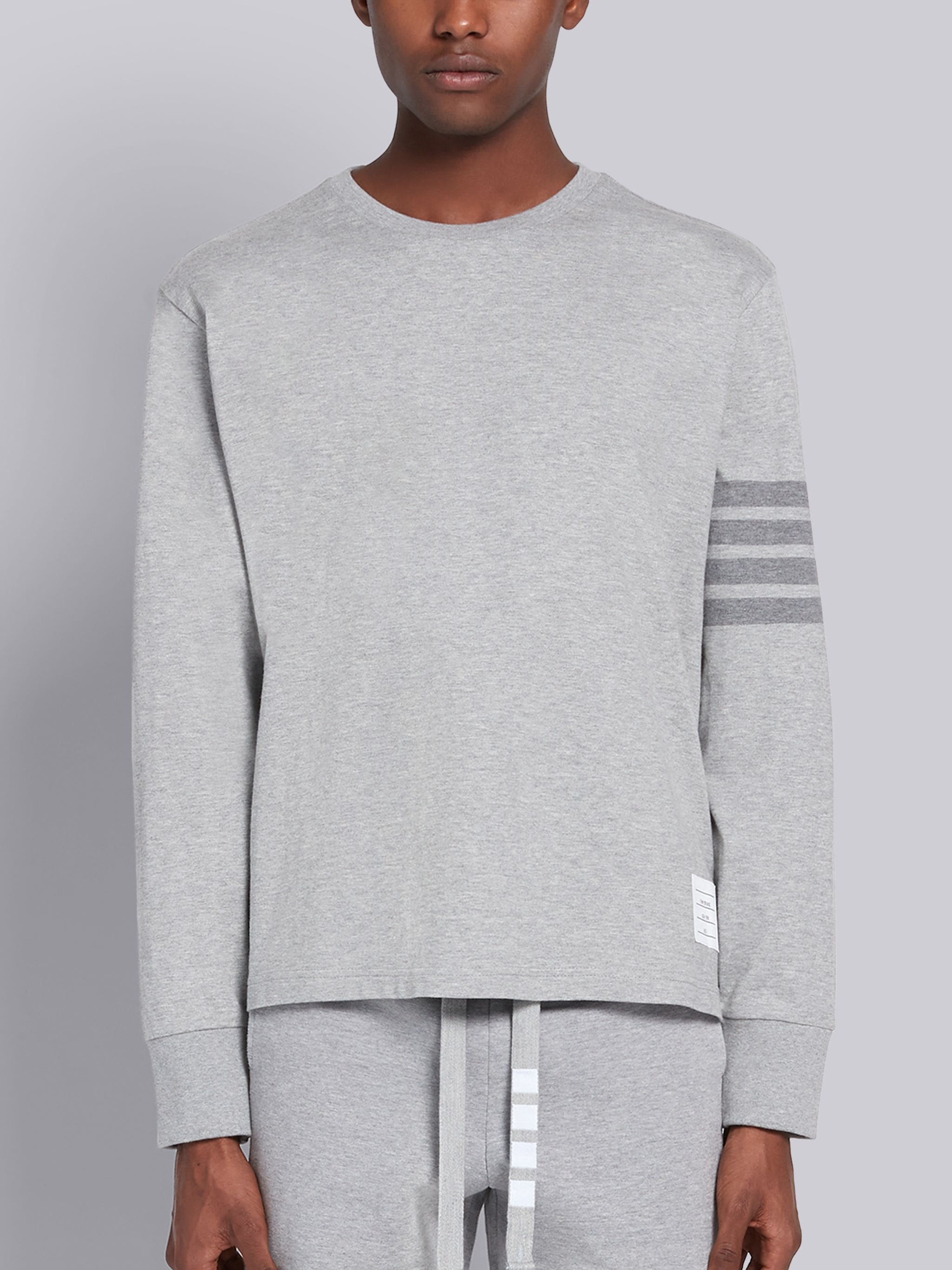 Light Grey Cotton Jersey Long Sleeve Tonal 4-Bar Rugby T-shirt