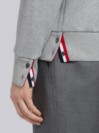 DETAILS & FIT Leisurewear made artful. Our Classic Loopback Full Zip Hoodie is adorned with a name tag applique and our iconic grosgrain stripe. 2-way silver tone front zip closure Drawstring hood with silver tone aglets Kangaroo pocket with name tag applique Model is 6' 1" (185cm), wearing size 0 100% Cotton Made in Italy MJT153A-03377-055