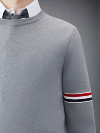 DETAILS & FIT A signature Thom Browne emblem defines our Cotton Milano Stripe Pullover. Presented in quality cotton, this pullover will stand the test of time. Crew neckline Signature striped grosgrain armbands Buttoned side vents and cuffs with signature striped grosgrain trim Signature striped grosgrain loop tab at back of neck Model is 6' 1" (185cm), wearing size 1 100%Cotton Made in Italy MKA326A-Y3001-055 - Shoulder Width: 42.0cm