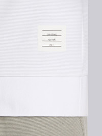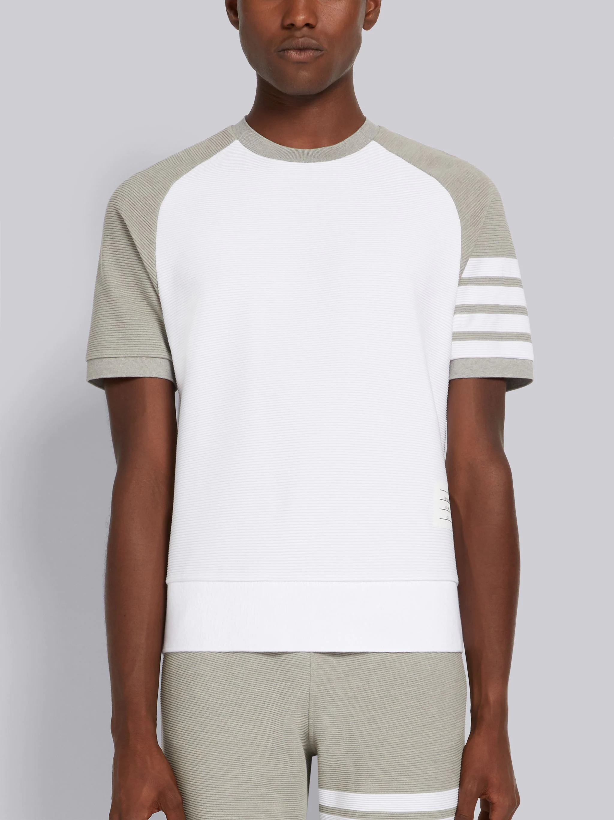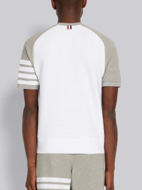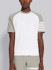 DETAILS & FIT Short-sleeved sweatshirt in white cotton ottoman rib with light grey saddle sleeves and 4-bar stripe detail at left sleeve in white. Crew neckline. Name tag applique above hem. Signature striped grosgrain loop tab at back of neck. Model is 6' 1" (185mm), wearing size 0. 100% Cotton MJT321A08138055