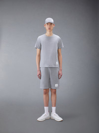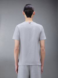 DETAILS & FIT A silhouette that has stood the test of time, our Jersey Relaxed Side Slit Tee is enriched with a breathable side slit and Thom Browne emblems throughout. Bound Crew neckline Name tag applique above hem Shallow side slits Signature striped grosgrain loop tab at back of neck Model is 6' 1" (185cm), wearing size 0 100% Cotton Made in Japan MJS067A-00042-055 - CHEST: 99.0cm - Shoulder Width: 41.0cm