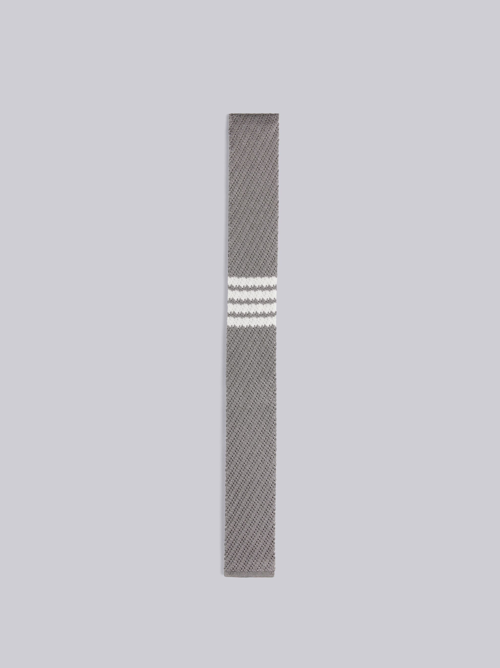 DETAILS & FIT Light Grey Silk Knit Tie Engineered 4-Bar Stripe Keeper Loop Inner Name Tag Signature Grosgrain Reliever NOTES 100% Silk Made in Italy MNL035KY4003055