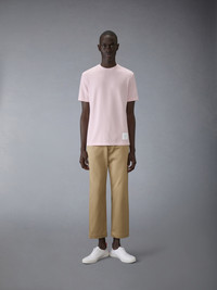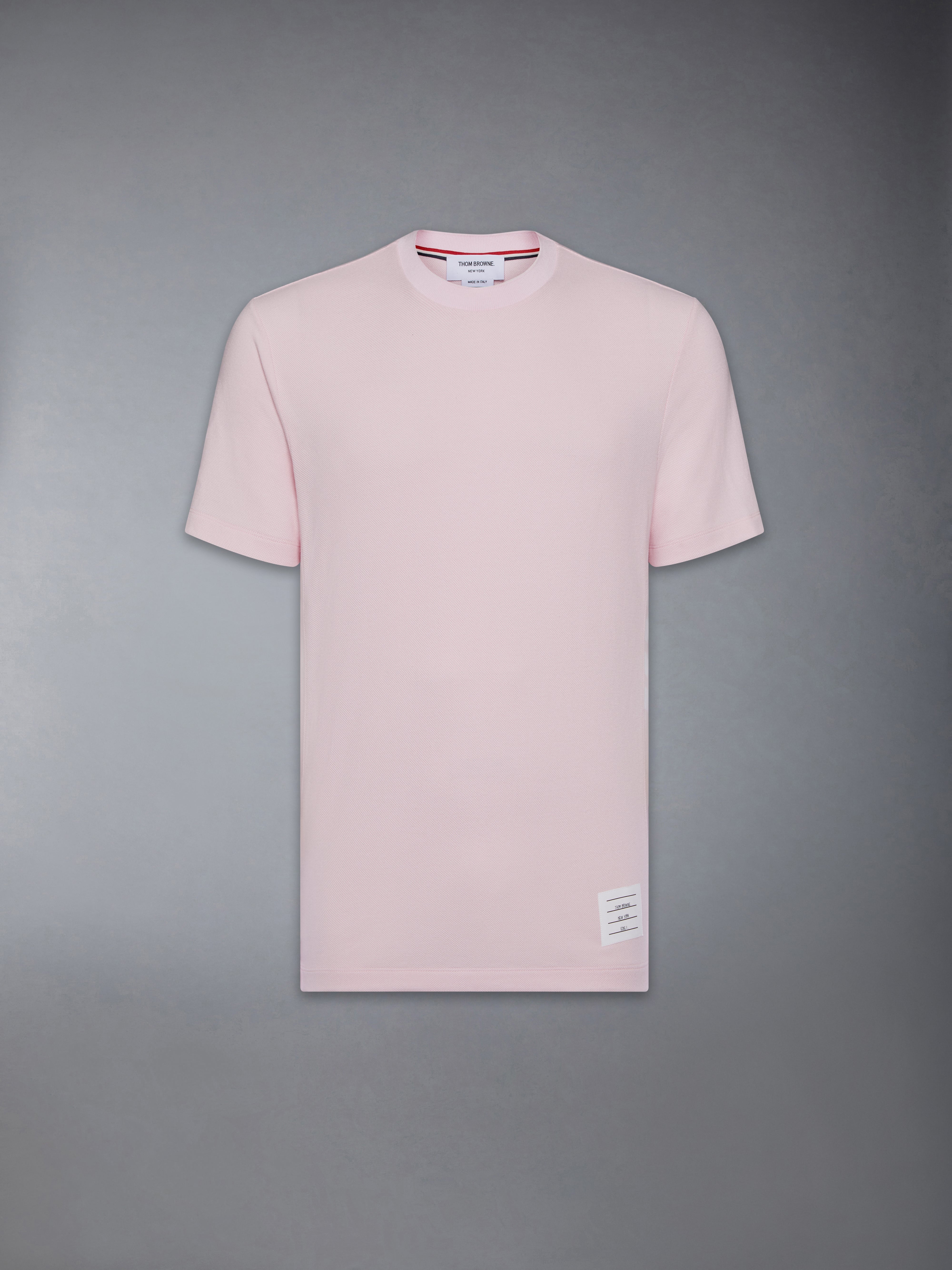 A signature Thom Browne emblem defines this luxe tee — our iconic 4-bar detailing. This casual shirt will serve as a staple in your seasonal wardrobe for years to come. Name tag applique 4-bar detailing Signature striped grosgrain loop tab Model is 6'1" (185cm), wearing size 1 100% Cotton Made in Italy MJS123A-00050-680