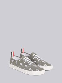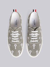 DETAILS & FIT Heritage trainer in medium grey with machine satin stitch lobster embroidery and vulcanized rubber sole in white. Flat white lace up closure, white metal eyelets, white topstitching. Signature striped grosgrain loop tab at heel. Upper:100% Polyester Sole:100% Rubber Lining:100% Cotton Made in Spain MFD201AE0166035