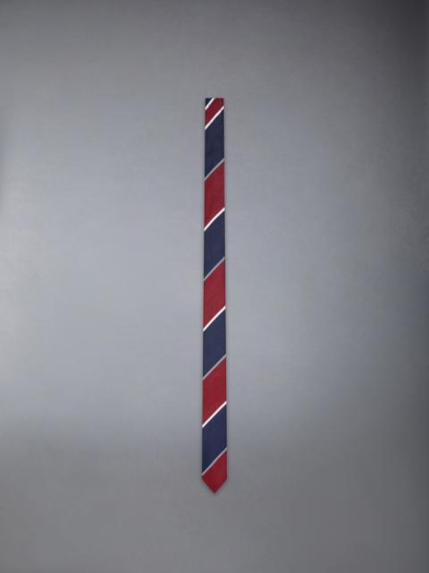 A nod to the sport that continues to shape the brand’s visual language. This classic silk tie features a diagonal RWB stripe intersected by embroidered tennis rackets—graphic, iconic, and deeply rooted in Thom Brown’s personal code. Engineered RWB detailing Tennis racket embroidery RWB grosgrain trim Name tag applique 100% Silk Made in Italy MNL001A-F1119-415