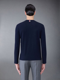 DETAILS & FIT Long sleeve tee in navy wool jersey with engineered 4-bar stripe detail at left side in white. Crew neckline, name tag applique above front hem. Signature striped grosgrain loop tab at back of neck. Model is 6' 1" (185cm), wearing size 1 97% Wool, 3% Elastane Combo1: 97% Wool, 3% Elastane Made in Italy MJS218A-J0084-415