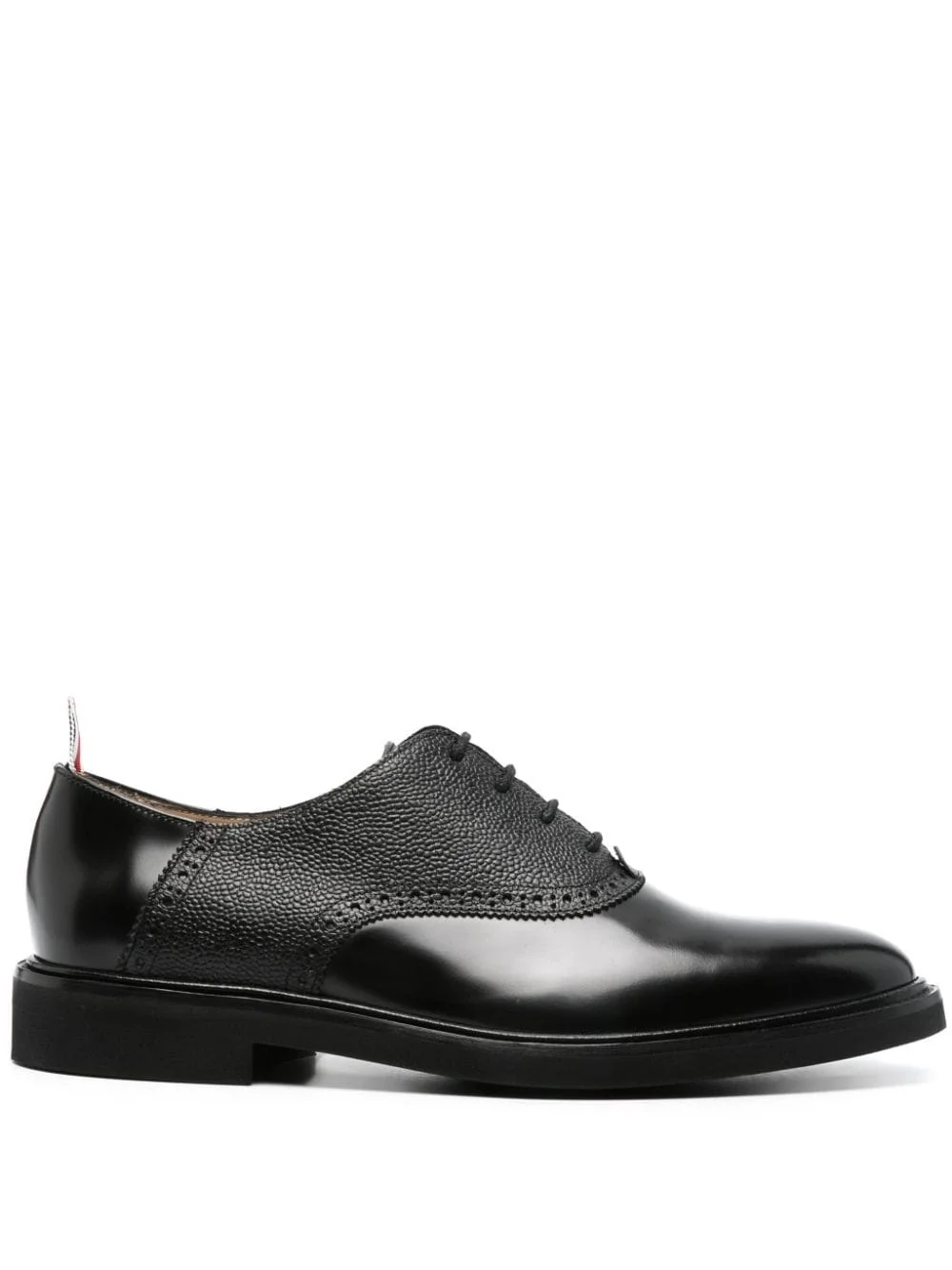 logo-tag leather brogues Highlights - Black - Calf leather - Smooth grain - Grained panel detailing - Logo tag to the rear - Logo at the sole - Almond toe - Front lace-up fastening - Branded leather insole - Rubber outsole - This piece comes complete with a protective dust bag. Made in Italy Composition Outer: Calf Leather 100% Sole: Rubber 100% Lining: Calf Leather 100% SIZE & FIT Measurement HEEL 1.18 in(3 cm) Sole height 0.59 in(1.5 cm)