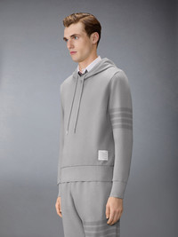 This pullover hoodie reinterprets athletic uniform codes through a refined lens. The overdyed 4-bar detailing adds tonal dimension and visual subtlety to the iconic motif. Coordinate with the Loopback Overdyed 4-Bar Sweatpants. Drawstring hood with RWB-detailed aglets Ribbed cuffs and hem Overdyed 4-bar detailing Name tag applique Signature striped grosgrain loop tab Model is 6'1" (185cm), wearing size 1 100% Cotton Combo 1: 97% Cotton, 3% Elastane Made in Italy MJT556A-J0007-055