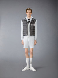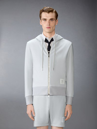 This zip-up hoodie features one of Thom Browne’s most recognizable emblems—engineered 4-bar detailing, inspired by midcentury collegiate and athletic uniforms. The four stripes stand for discipline, achievement, and tenacity, core values woven into the brand’s visual identity. Coordinate with the Loopback Jersey 4-Bar Shorts. Front two-way zip closure Drawstring hood with RWB-detailed aglets Slip hand pockets Ribbed cuffs and hem Engineered 4-bar detailing Name tag applique Signature striped grosgrain loop tab Model is 6'1" (185cm), wearing size 1 100% Cotton Made in Japan MJT517A-03037-050