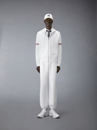 These sweatpants shift a sportswear staple into a contemporary uniform expression. The softened silhouette in loopback jersey is defined by subtle signatures, including a tonal name tag applique, reading relaxed yet intentional. Style with the Pique 4-Bar Polo to complete the look. Elasticated drawstring waistband with metal RWB-detailed aglets Hand pockets Elasticated cuffs Tonal leather name tag applique Signature striped grosgrain loop tab Model is 6'1" (185cm), wearing size 0 100% Cotton Made in Japan MJQ240A-03037-100