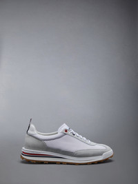 DETAILS & FIT Activewear made artful. Our Fine Kid Suede Tech Runner was born out of Thom's passion for running — eight miles a day at that. Find our signature grosgrain trim at the rear. Lace up closure Rubber sole Leather lining Signature striped grosgrain loop tabs at heels Combo3: 100% Calf Leather Upper: 100% Polyamide Sole: 100% Rubber Lining: 100% Calf Leather Made in Italy MFD180A-03050-100 - HEEL: 4.0cm - Sole height: 2.5cm