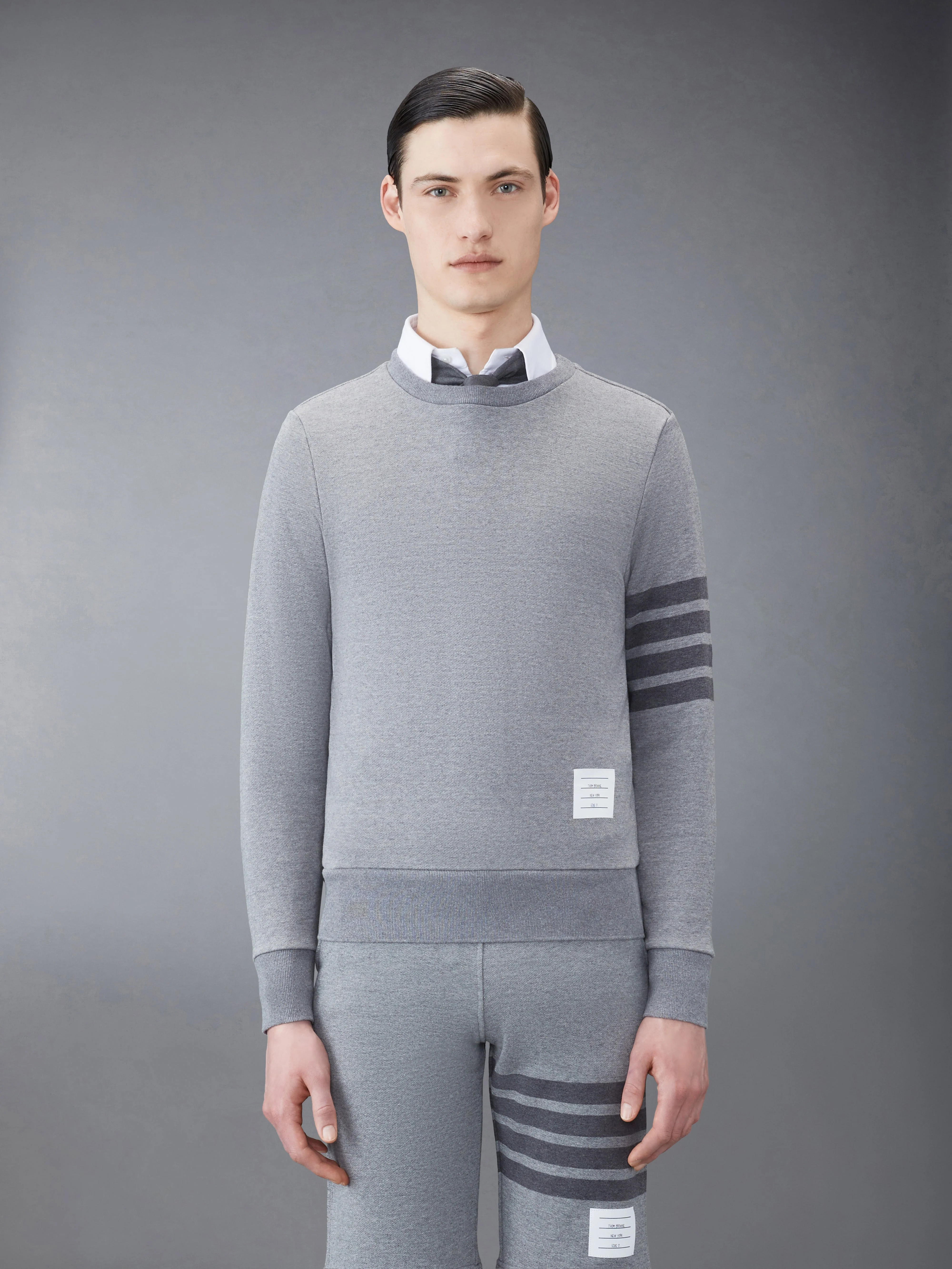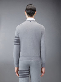 Medium Grey Cotton Loopback Relaxed Fit Tonal 4-Bar Crewneck Sweatshirt