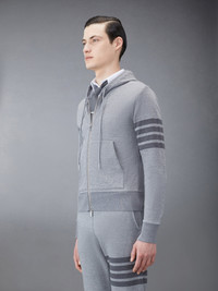 Medium Grey Cotton Loopback Relaxed Fit Tonal 4-Bar Zip-up Hoodie
