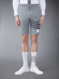 Leisurewear made artful. Our Classic Loopback 4-Bar Sweatshorts is adorned with our iconic 4-Bar stripe detailing emulated after varsity stripes. Drawstring waistband with silver tone aglets Engineered 4-bar stripe detail at left thigh Name tag applique above left cuff Slip side pockets Single back welt pocket Signature striped grosgrain loop tab at back waist Model is 6' 1" (185cm), wearing size 0 100% Cotton Made in Japan MJQ012A-06910-035