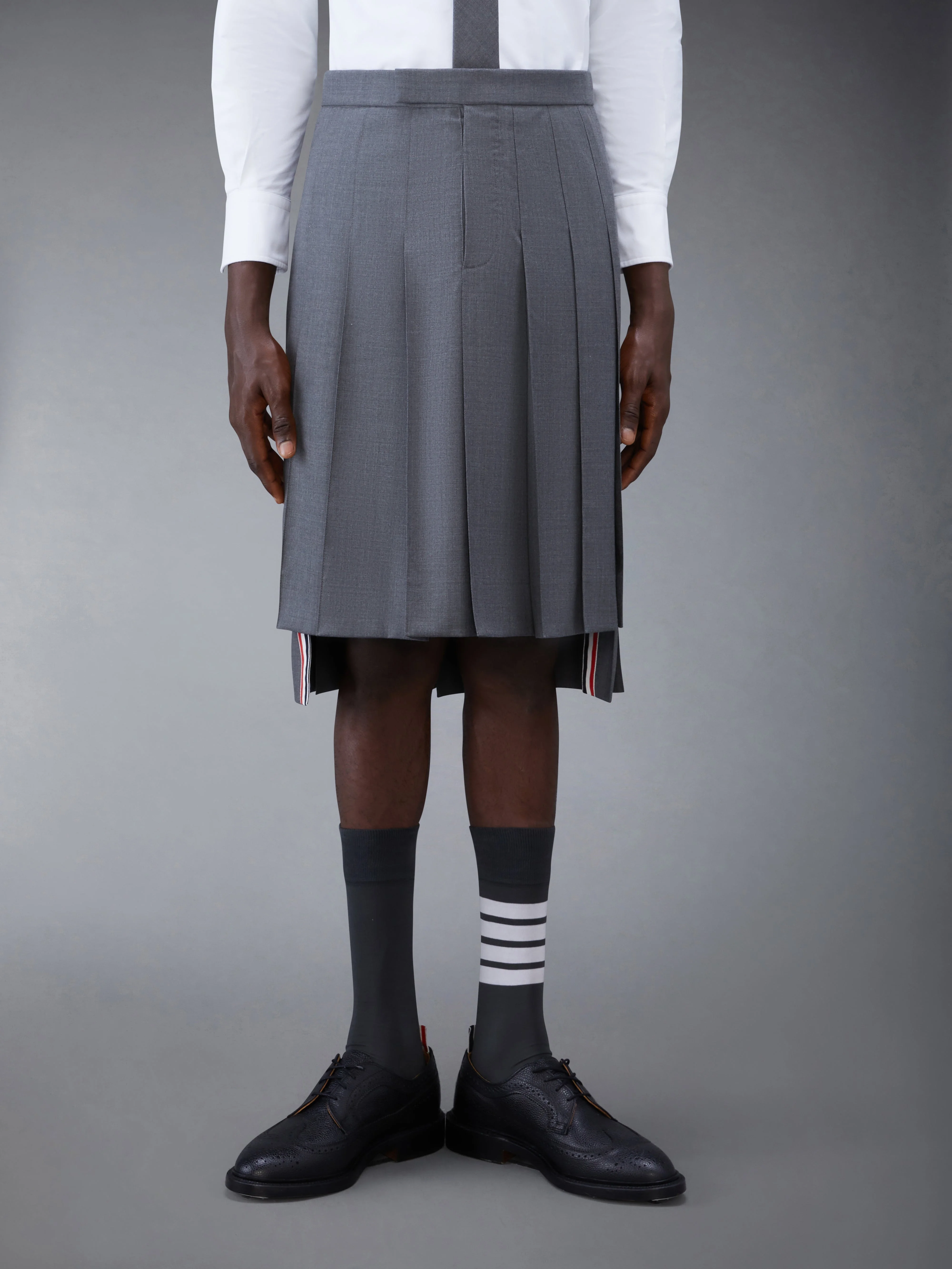 Medium Grey Super 120's Twill Classic Rise Pleated Skirt