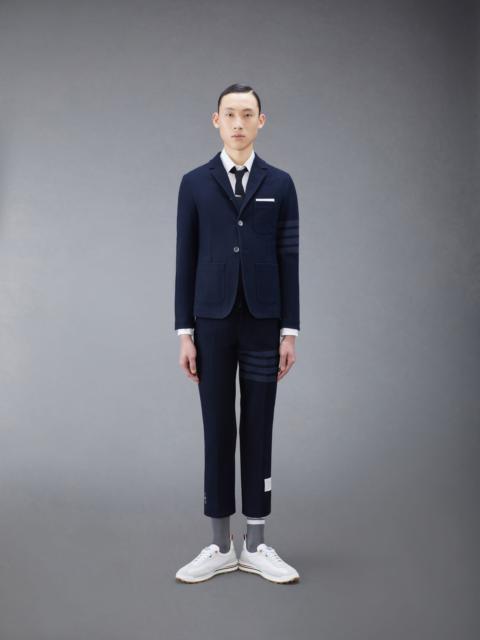 DETAILS & FIT Single-breasted sport coat in medium grey double face tech twill with tonal 4-bar stripe detail at left sleeve. 3 patch front pockets, notched lapels. Double vented back hem. Buttoned cuffs with signature striped grosgrain trim. Model is 6'1" (186 cm), wearing size 1 100% Cotton Made in Italy MJT175A06772035