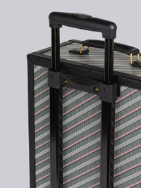 DETAILS & FIT Rolling hard-sided carry on suitcase in monogram stripe coated canvas with black leather frame and details. Brass snap lock closures, extendable handle, leather top and side handles, two wheels. Brass footed details. Black leather and striped luggage tags. Striped lining with buckled keeper straps and large folio pocket. Brass hardware. Measures 35cm x 49.5 x 18cm. 43% Cotton, 35% Linen, 12% Polyurethane, 10% Calf Leather Made in Italy MAL031A07557035 - DEPTH: 17.0cm - HANDLE: 4.0cm - HEIGHT: 46.0cm - WIDTH: 35.0cm