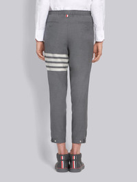 DETAILS & FIT Medium Grey Trouser Plain Weave Suiting Snap Front Elastic Waistband Engineered 4-Bar Stripe 2 Side Zip Up Pockets Exterior Name Tag Signature Grosgrain Loop Tab Model is 6'1" (186 cm), wearing size 0. NOTES 100% Wool Made in Japan MTT012A06146035