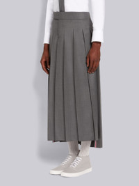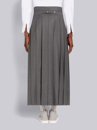Medium Grey Super 120's Wool Twill Pleated Backstrap Ankle Length Skirt