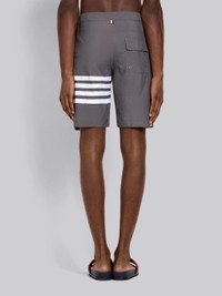 DETAILS & FIT Swim short in medium grey solid swim tech with woven 4-bar stripe detail at left thigh in white. Snap button closure, single hip pocket. Signature striped grosgrain loop tab at back waist. Model is 6' 1" (185mm), wearing size 0. 100% Polyamide Made in Italy MTU223A05415035 - FRONT RISE: 24.0cm - Length: 48.0cm - WAIST: 82.0cm