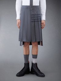 Medium Grey Wool Cashmere Flannel Knee Length Pleated 4-Bar Skirt