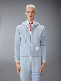 Soft like a luxury blanket, this sophisticated hoodie can be worn any time of year. Feel head-to-toe comfort when you pair it with our Melange Brushed Loopback 4-Bar Sweatpants. Front zip closure 4-bar detailing Drawstring hood Name tag applique Side slip pockets Model is 6'1" (185cm), wearing size 1 100% Cotton Made in Italy MJT542A-J0225-480