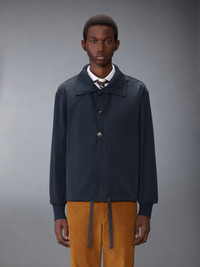 Crafted from lightweight yet durable fabric, this anorak offers protection from the elements without compromising comfort. The adjustable hood and drawstring waist provide a customizable fit, while spacious pockets add practicality. Designed for versatility, it layers seamlessly over any outfit—whether braving the greater outdoors or navigating the city. Pair it with our Narrow Wale Corduroy Chinos. Partial front button closure with striped grosgrain placket Drawstring hood Side slip pockets Interior pocket with name tag Pleated back yoke with locker loop Model is 6'1" (185cm), wearing size 1 100% Polyester Combo 1: 100% Polyester Made in Italy MJO240C-F0956-415