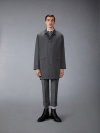 This functional smock, featuring a removable pouch, will become a closet staple. It's easy to pack and take on the go whenever you need an extra layer of warmth. At the back, you'll find our logo—a reference to athletic jerseys and our sporty heritage. Front button closure 2 Front flap pockets Interior pocket with name tag Single removable interior pocket Buttoned side vents with signature striped grosgrain trim Signature striped grosgrain loop tab Model is 6'1" (185cm), wearing size 1 60% Linen, 40% Cotton Lining: 100% Silk Made in Italy MOT099P-F0967-025