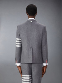 DETAILS & FIT A sport coat crafted in fine flannel, a fabric that epitomizes the fall and winter seasons. Pair it with our Flannel 4-Bar Low Rise Backstrap Trouser. 4-bar detailing Front button closure 2 Flap pockets Single chest pocket Buttoned cuffs with signature striped grosgrain trim Interior pockets with name tag applique Tricolor stripe lining Single back vent Signature striped grosgrain loop tab Model is 6' 1" (185cm), wearing size 0 95% Wool, 5% Cashmere Lining: 100% Cotton Lining2: 100% Cupro Made in Italy MJU558A-F0666-035