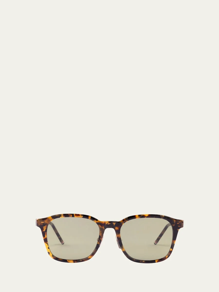 Thom Browne rectangle sunglasses in acetate Lens/bridge/temple (in mm): 52-19.5-147 Solid-color lenses Saddle nose bridge Adjustable nose pads Tapered arms Temple tips with signature stripes Acetate 100% UVA/UVB protection Made in Japan Online Inquiries: BGS21_NCMPM| Store Inquiries: #4919813