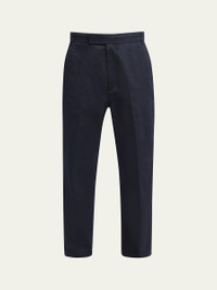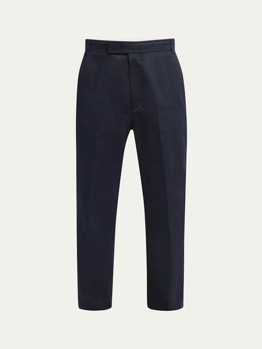 Thom Browne utility chino trouser in garmentdyed twill Regular rise Signature grosgrain loop at back waist Front slant pockets Buttoned back pockets Full length Straight legs Cotton Dry clean Made in Italy