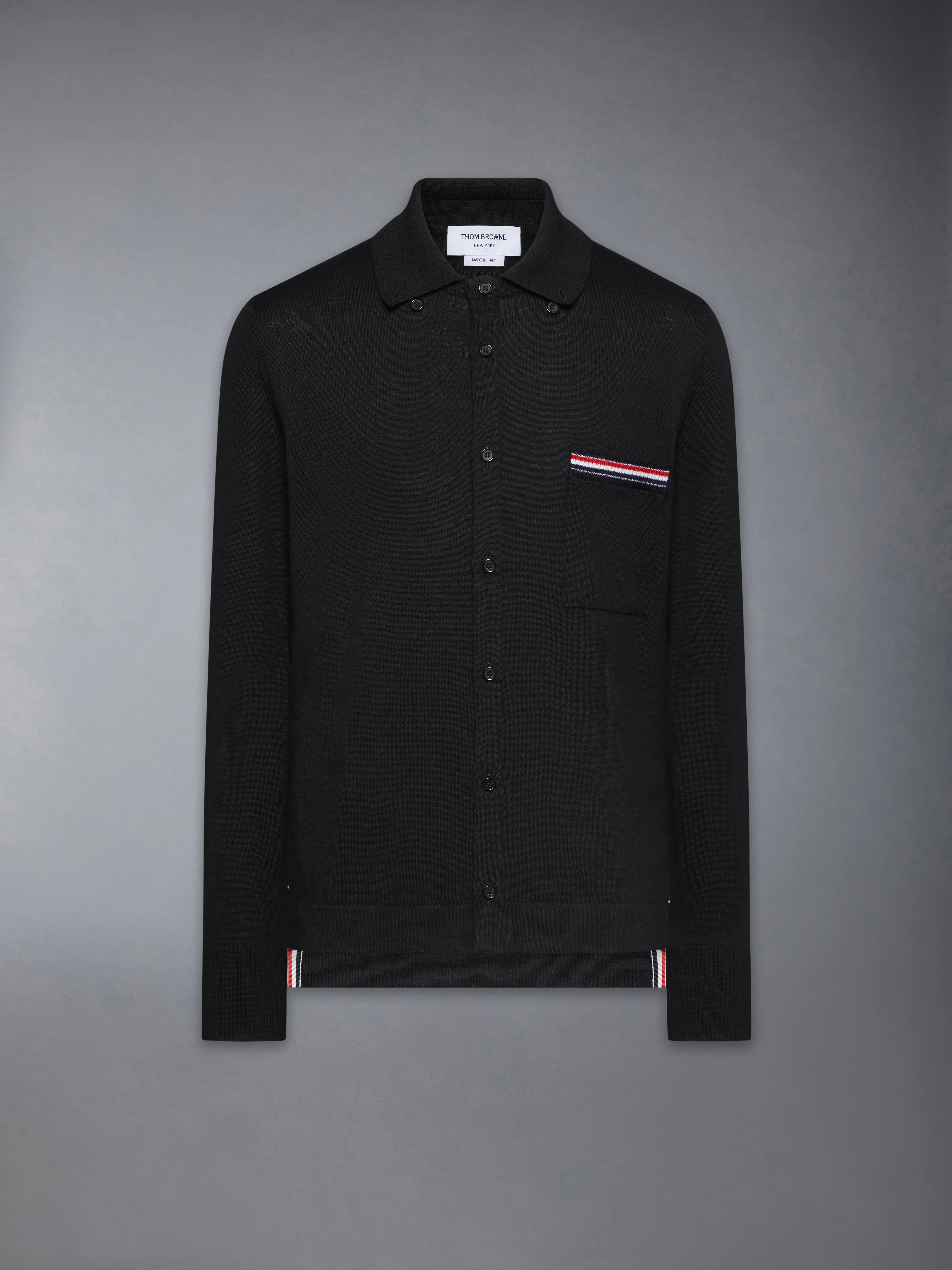 Subtle branding is found at the chest pocket, side vents, and cuffs of this otherwise classic button-down. Made with fine merino wool fabric, it will keep you warm in between changing seasons. Front button closure Single chest pocket with tricolor trim Buttoned cuffs with signature striped grosgrain trim Buttoned side vents with signature striped grosgrain trim Model is 6'1" (185cm), wearing size 1 100% Virgin Wool Made in Italy MKL007B-Y1051-001