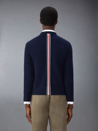 DETAILS & FIT A timeless silhouette in classic grey, emblazoned with a signature Thom Browne emblem at the back. V-neckline Front button closure with signature striped grosgrain placket Front slip pockets Signature striped grosgrain trim at back Signature striped grosgrain loop tab Model is 6' 1" (185cm), wearing size 1 100% Virgin Wool Made in Italy MKA518A-Y1029-415