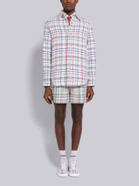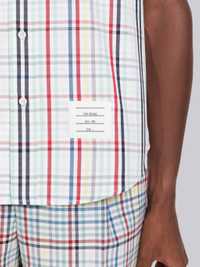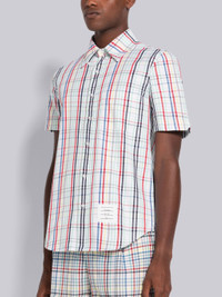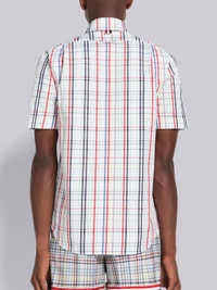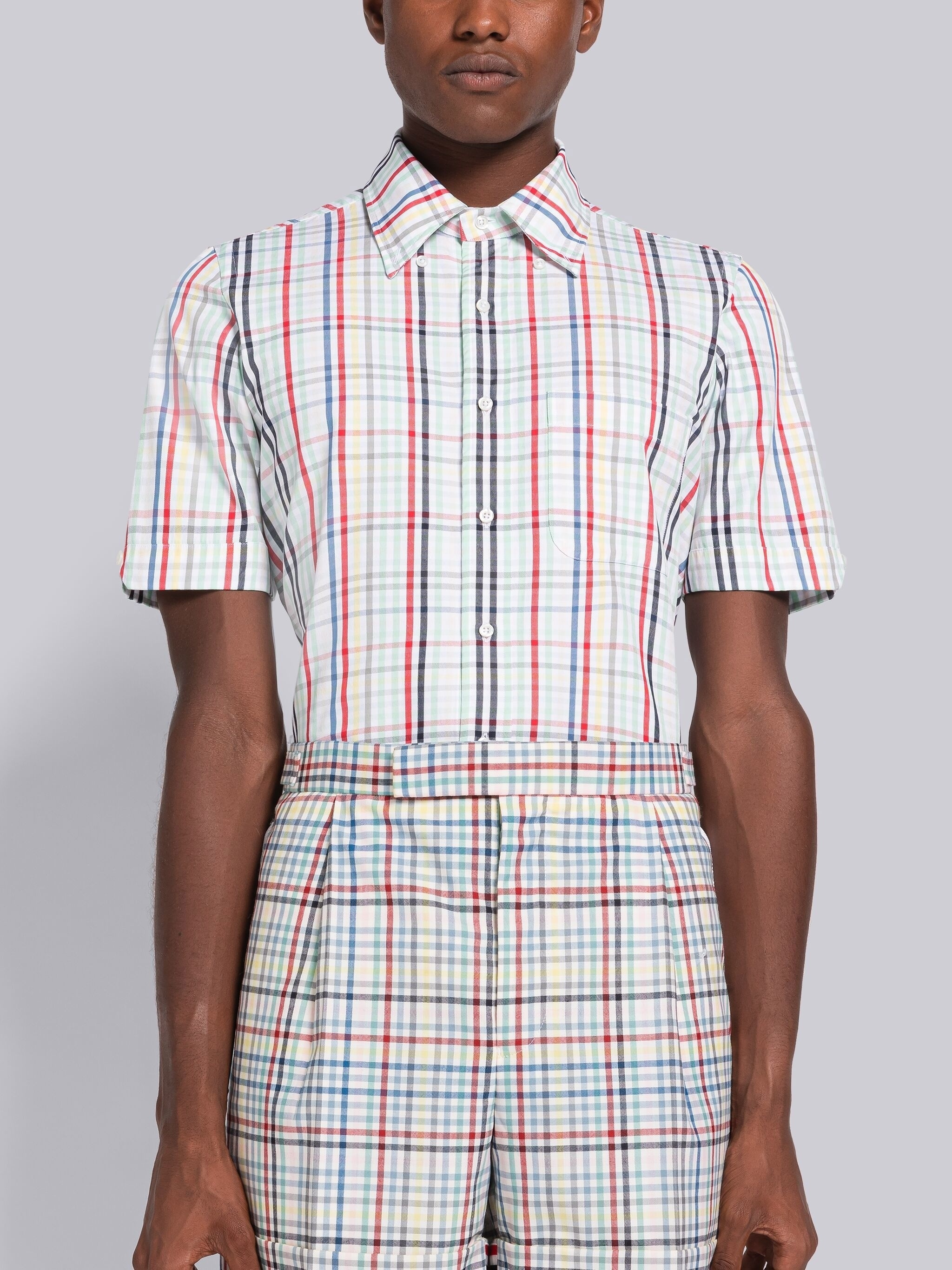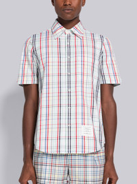 DETAILS & FIT Short sleeve shirt in micro gingham cotton Oxford. Front button closure, patch chest pocket, name tag applique above hem. Notched cuffs. Pleated back yoke with locker loop. Signature striped grosgrain loop tab at back of neck. Model is 6' 1" (185cm), wearing size 1. 100% Cotton Made in Italy MWS239AF0273996