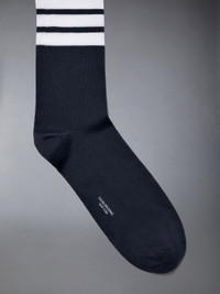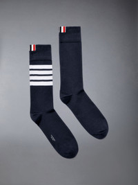 Mid calf socks in lightweight cotton with 4-bar stripe detail at one cuff in white. Logo printed at soles in white. Signature striped grosgrain loop tabs at cuffs. 75% Cotton, 25% Polyamide Made in the United Kingdom MAS023B-01690-415