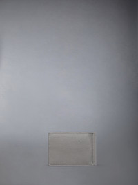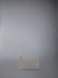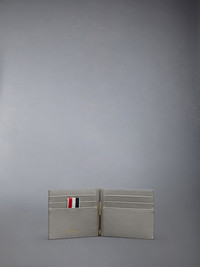 Money clip wallet in light grey pebble grain leather. 6 card slots and brass money clip at interior. Gold foil printed logo at left interior. Signature striped grosgrain loop tabs at left. 100% Calf Full Grain Leather Lining: 100% Polyester Made in Italy MAW025L-00198-025